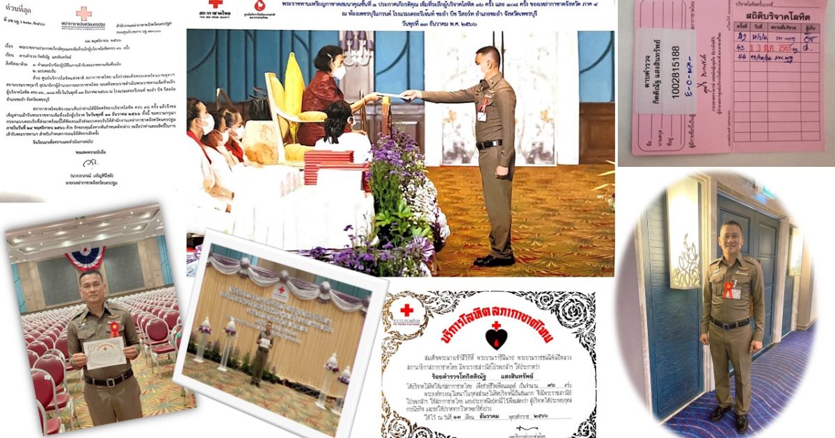 ขอแสดงความยินดีกับ ร.ต.ท.กิตติณัฐ แสงสินทรัพย์ รอง สว.(จร.) สน.หนองค้างพลู เข้ารับพระราชทานประกาศเกียรติคุณและเข็มที่ระลึกผู้บริจาคโลหิตครบ 36 ครั้ง
