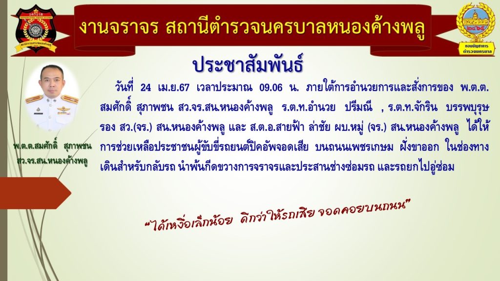 ประชาสัมพันธ์ งานจราจร สน.หนองค้างพลู