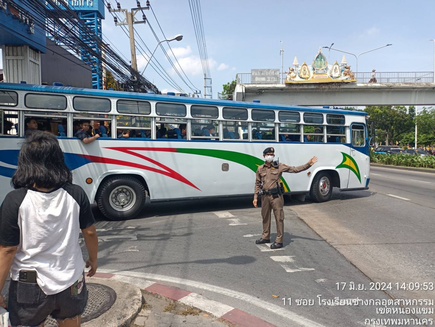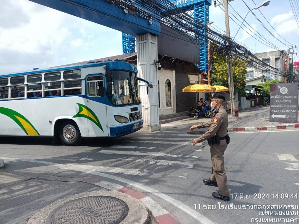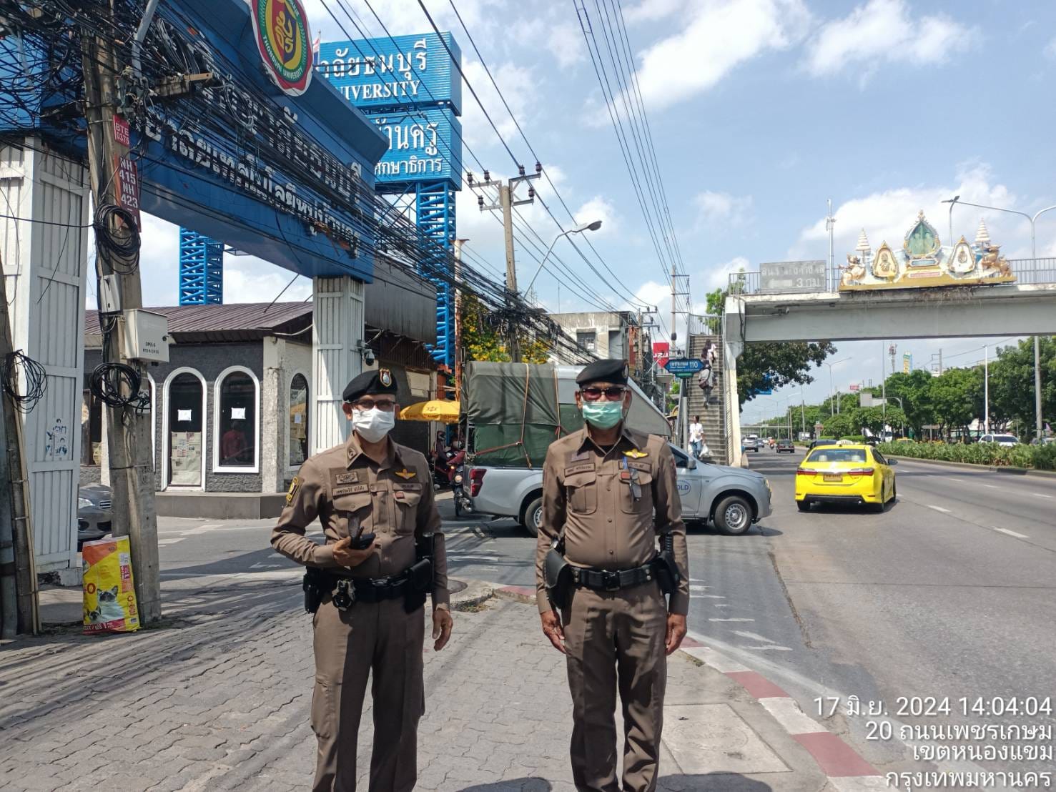 หนองพลู 2-2 , 2-0 ว.4 ป้องกันเหตุ 600 ดูแลความสงบเรียบร้อยและอำนวยความสะดวกจราจร หลังเลิกเรียน บริเวณป้ายรถประจำทาง ปากซอยเพชรเกษม 110